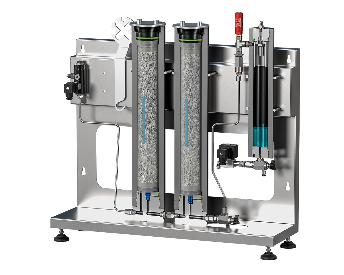 Diese Konfiguration bietet eine größere Filtrationsreichweite und eine effektivere Reinigung, ideal für Anwendungen, die große Mengen an Atemluft und maximale Zuverlässigkeit erfordern.